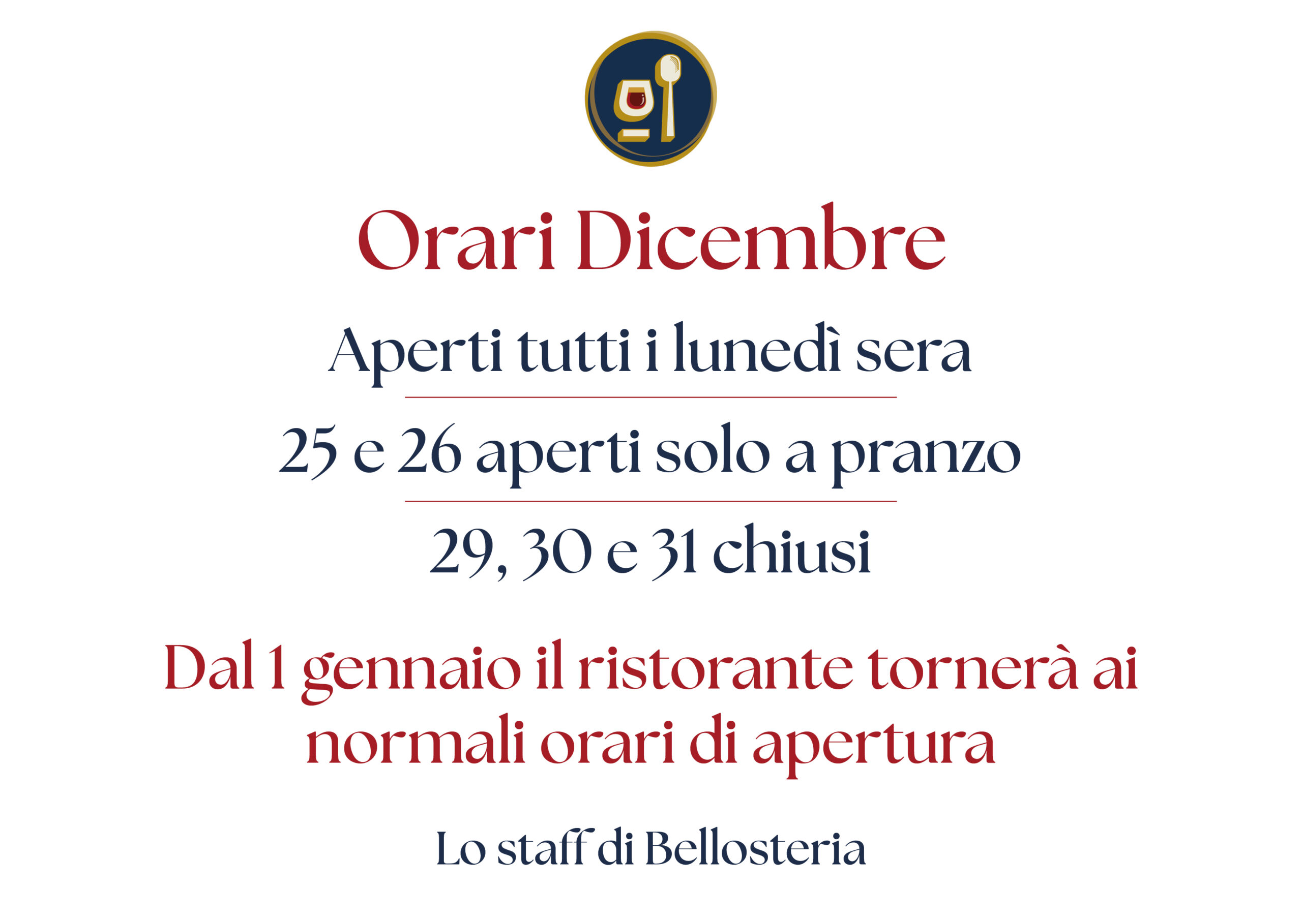 | Sabato | 12.00 – 14.30 | 19.00 – 23.30 |